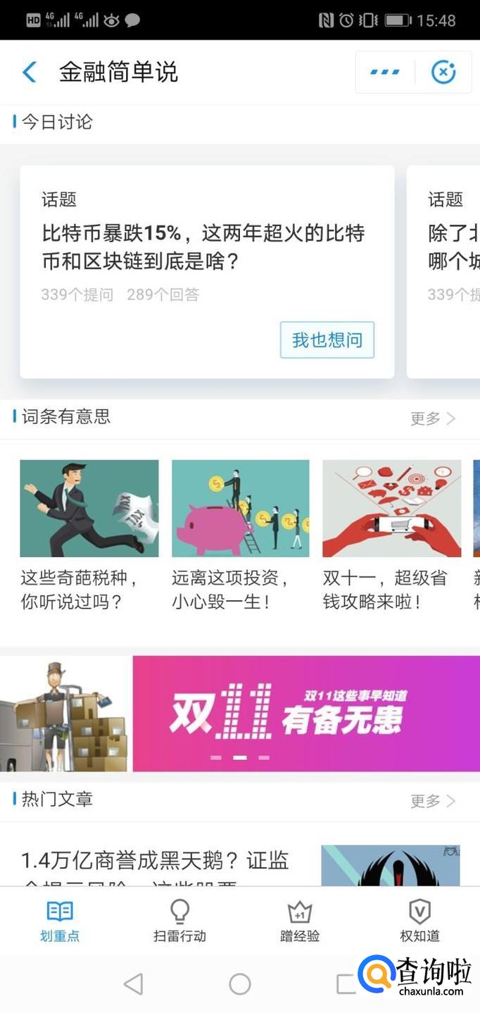 在扫雷行动板块,会有一个关于金融知识的介绍,新手先从这个了解,学习金融的知识;