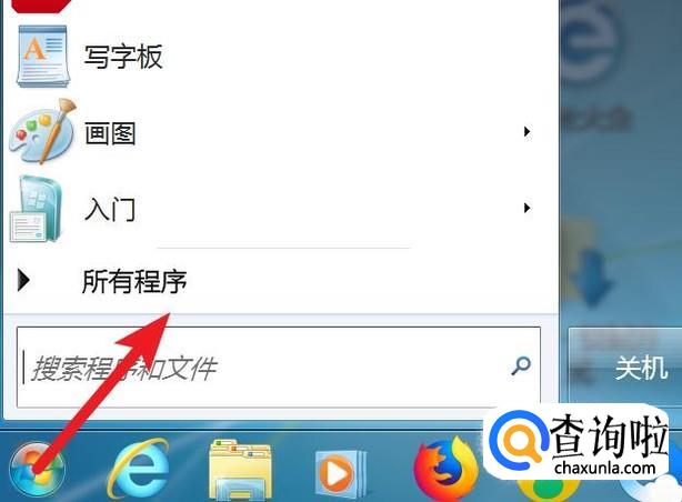 点击电脑上的开始菜单,然后点击‘所有程序’。
