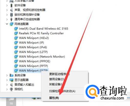 进入之后,在“网络适配器”里面找到无线网卡驱动,右击一下选择“属性”,如图所示。