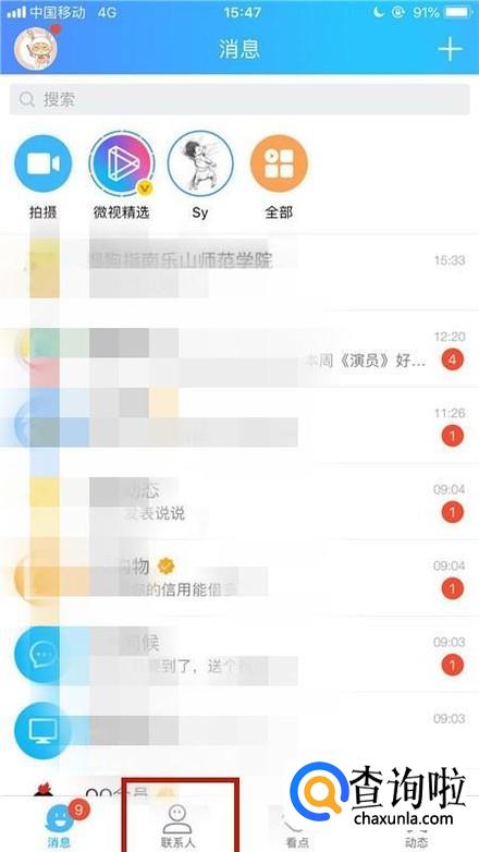 然后点击联系人,如下图所示。