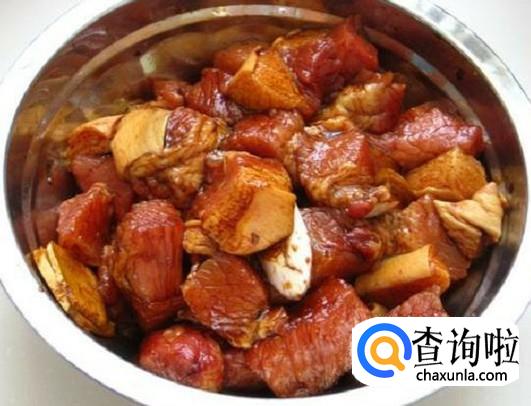五花肉切成厚片,用适量的盐、生抽、料酒、姜片、十三香料腌制5个小时左右,粽叶用水清洗干净。