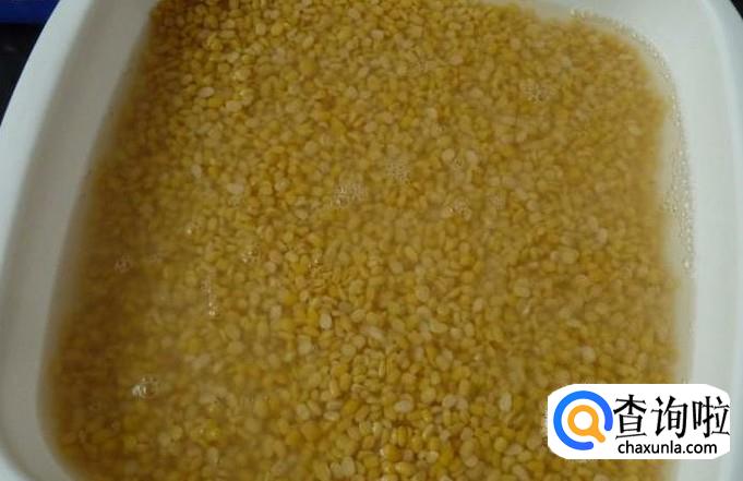 绿豆买去好壳的,把绿豆、糯米用水泡一个晚上。
