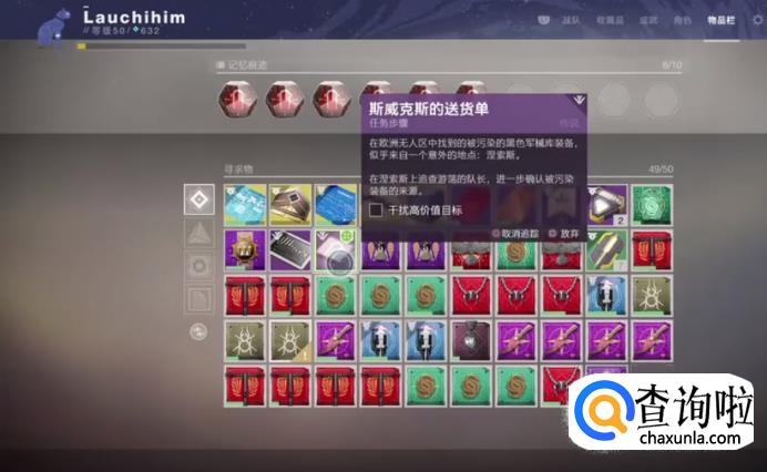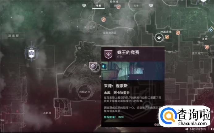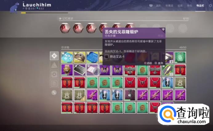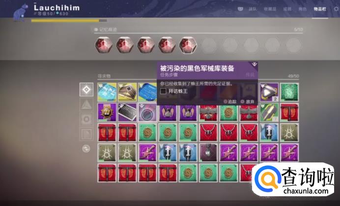 被偷走的黑色军械酷装备,回去找艾达对话,完成任务解锁。第二步,艾达要求我们收集35个被污染的装备,来向蛛王证明。接着我们去找蛛王承接第三步任务。第三步,在纷争海岸完成一次冷冻仓的英雄模式,75次近战击杀堕落者。