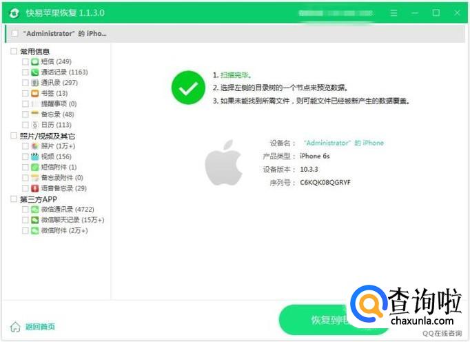 电脑,要恢复数据的苹果手机,快易苹果恢复软件(还可以选择其它软件,根据自己个人需要下载即可)