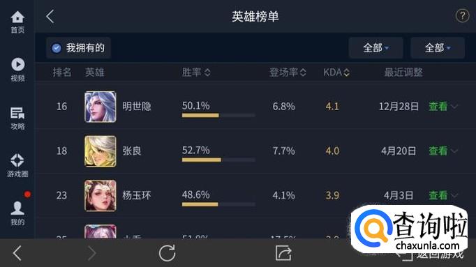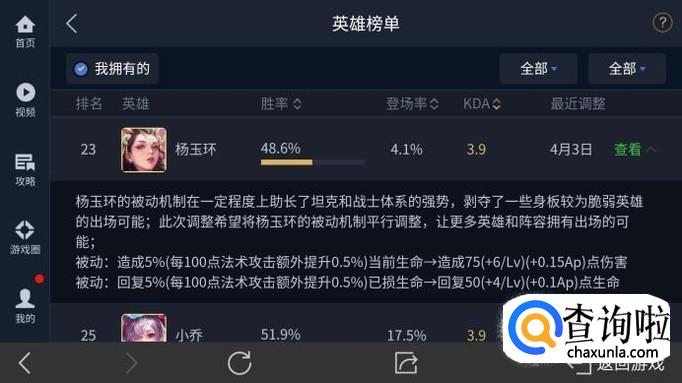 在出现的新页面中,点击英雄处的查看,就可以查看英雄近期的数据调整