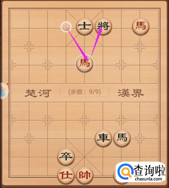 我们的话,就是让红方先走,破解残局,红方这里的话就是跳马进行将军,如图所示。