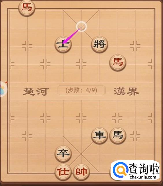 我们的黑方这里就要破解掉红方的马将军,我们的话红方只要将上走一步,如图所示。
