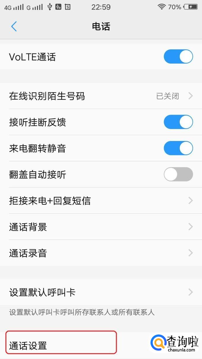 如图所示,屏幕往下划,点击最底部的“通话设置”。