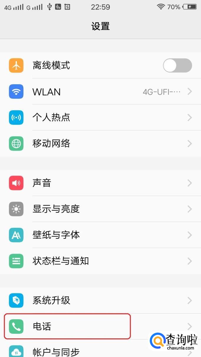 在设置界面内,找到“电话”,点击一下。