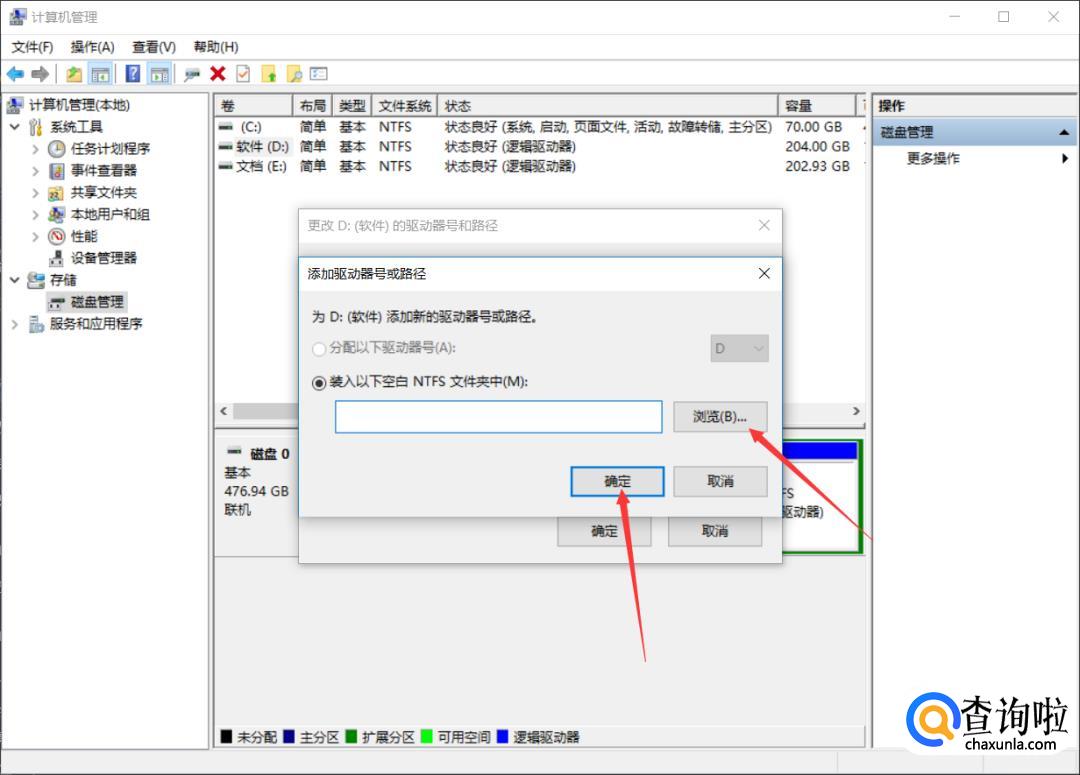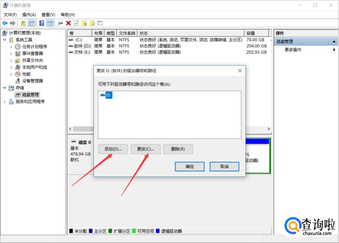 然后我们根据需要点击【添加】或【更改】,添加上U盘然后点击【确定】就可以显示U盘了。