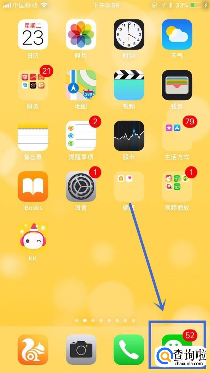首先在我们的手机桌面上找到微信并点击它,如下图所示。