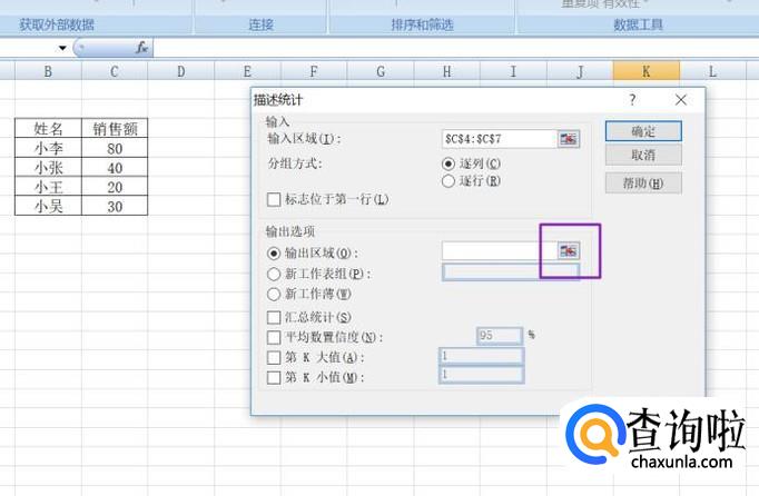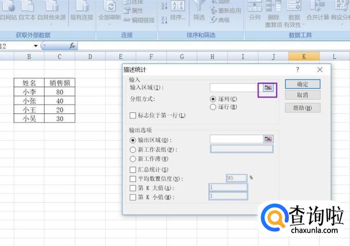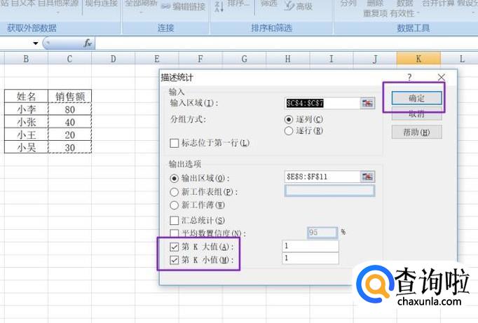 弹出的界面,我们将第K大值和第K小值勾选上,之后点击确定,这样就完成了描述统计了。