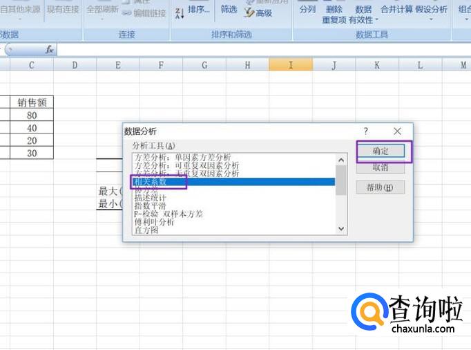 弹出的界面,我们选择相关系数,然后点击确定;