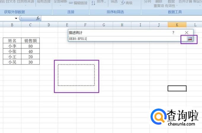 弹出的界面,我们点击输入区域的引用按钮,选择相关数据,之后再点击引用按钮;