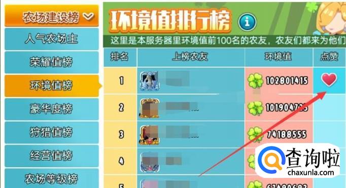 进入之后,分别给农场建设榜里面的榜单进行点赞,如图所示。