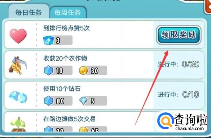 点赞完成之后,即可到每日任务里面领取奖励,如图所示。