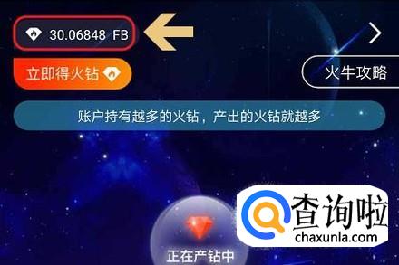 如果属于新手,那么前期产钻很快,越往后产钻越慢,以上页面的最左上方会显示目前一共拥有的火币;