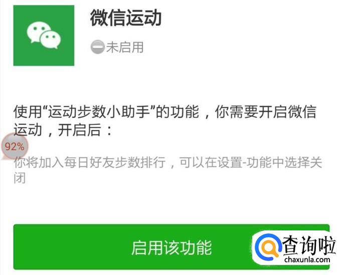 在第一个“微信运动”上点击进入,然后点下面的“启用该功能”,就打开了这个功能。