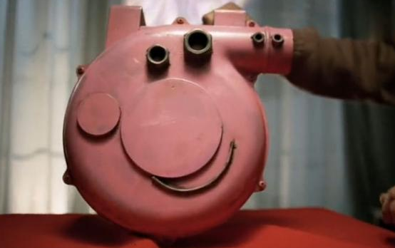 为了给孙子一个惊喜,他开始一通忙活。在短片各种蒙太奇手法(广告)的笼罩下,终于,爷爷在过年当天,给孙子拿出了自己亲手制作的——粉色鼓风机。