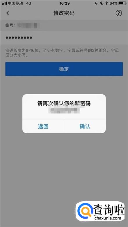 然后输入你的新密码并点击确定,如下图所示。