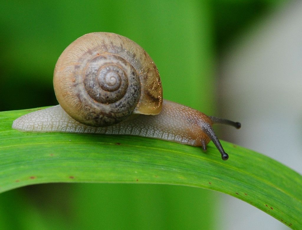 2、庭园蜗牛:别称散大蜗牛、蜗娄牛、驼包蜒蚰等,原产欧洲中西部的法国、英国等地区,通常栖身于园林或灌木丛中,故称为之“庭园蜗牛”。成蜗牛体形略小,直径约3厘米左右,螺壳质薄,呈黄褐色,并具有4条紫褐色带,壳表面布满许多黄褐色的小斑点,因品种退化,个体小,养殖经济效益较差。