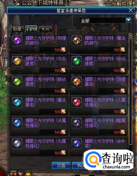 公会贡献证书则是在通关公会地下城时获得的道具,公会地下城的精英怪和BOSS也会随机掉落不同稀有程度的图腾勋章和守护珠。