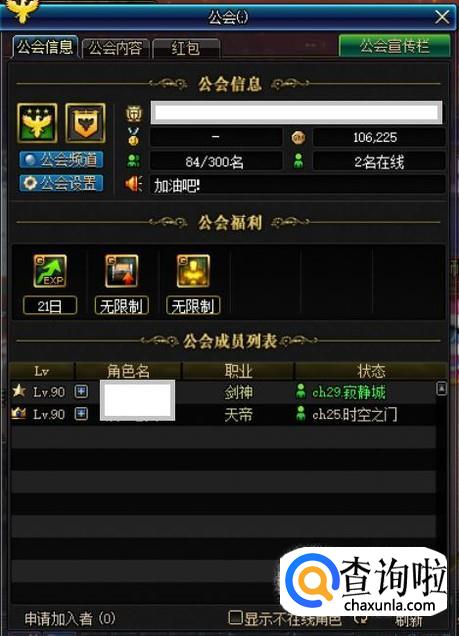 由于勋章和守护珠都是公会的相关产物,所以需要我们必须在游戏中加入一个公会,公会的活跃人数当然越多越好。