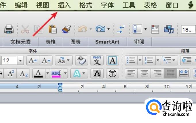 打开一个空白的word文档,点击菜单上的‘插入’