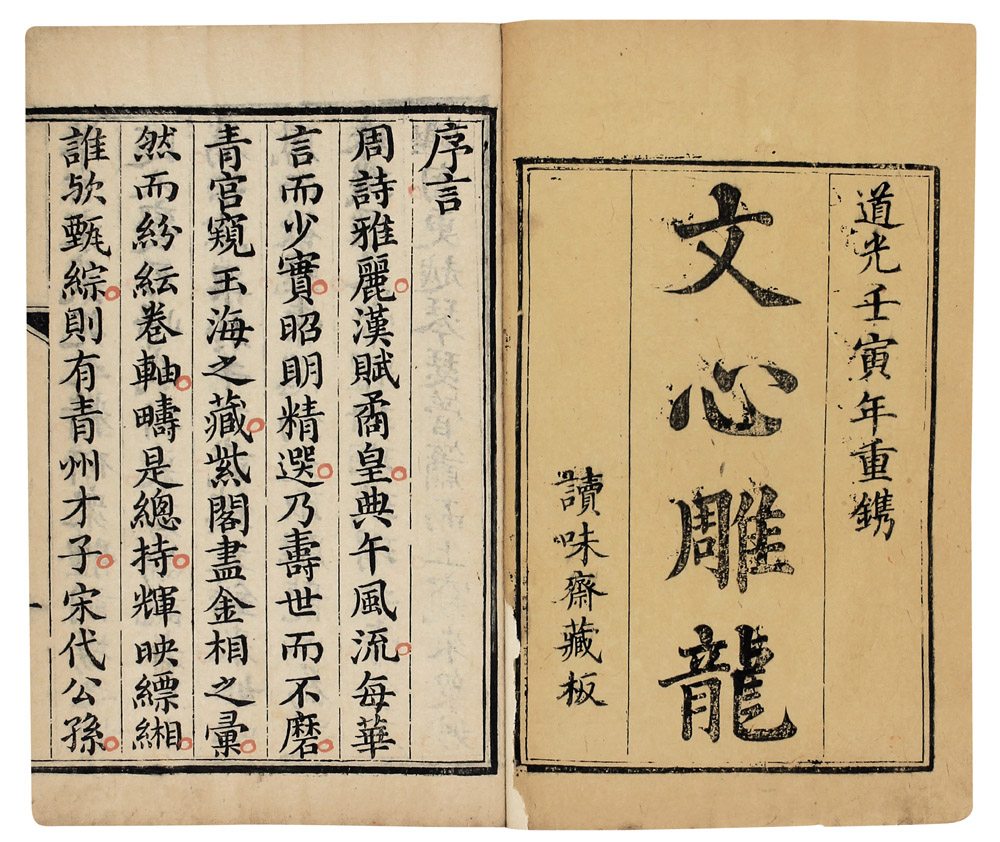 上部,从《原道》至《辨骚》的5篇,是全书的纲领。而其核心则是《原道》《徵圣》《宗经》3篇。要求一切要本之于道,稽诸于圣,宗之于经。从《明诗》到《书记》的20篇,以“论文序笔”为中心,对各种文体源流及作家、作品逐一进行研究和评价。在有韵文为对象的“论文”部分中,以《明诗》《乐府》《诠赋》等篇较重要;在无韵文为对象的“序笔”部分中,则以《史传》《诸子》《论说》等篇意义较大。