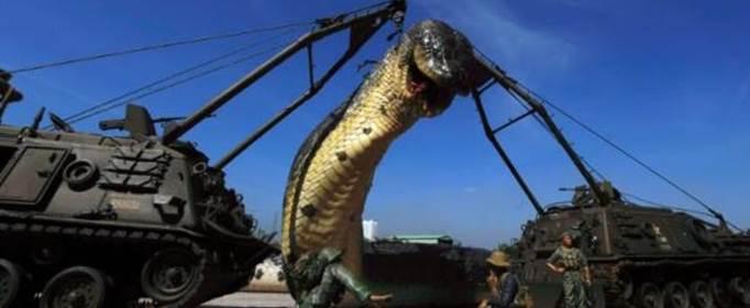 在中国一个挖土开山施工处,人们挖出了两条超级巨蛇,长达50多米,其中一条是已经死亡,另外一条给逃走了,据报道所称,该蛇应该是属于稀有蛇种,身长55米,重达600斤。