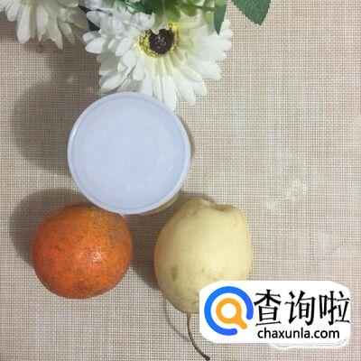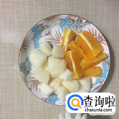 然后将橙子去皮取出肉,白梨去皮切成块。