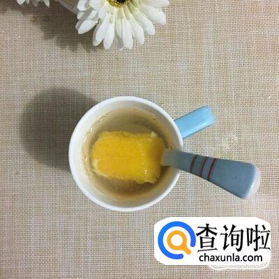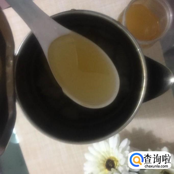 接着往电热杯中加入两勺的蜂蜜。