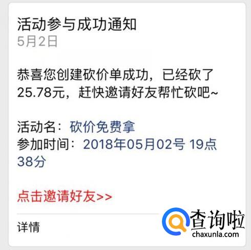 尽可能多地发挥你的人脉,将砍价消息发给你的朋友,人数越多,砍价越容易成功。