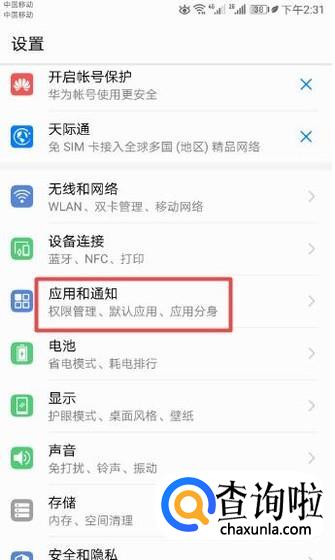 弹出的界面,我们点击应用和通知;