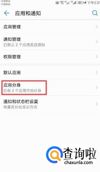 弹出的界面,我们点击应用分身;