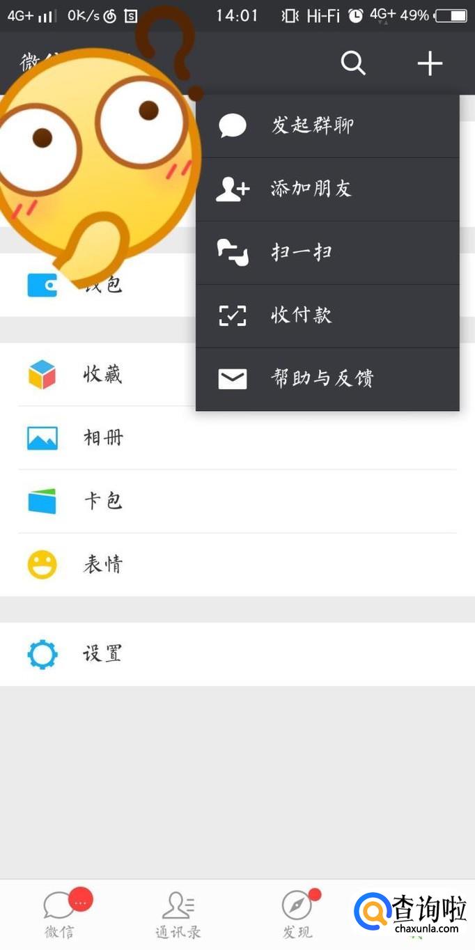 或者点开微信,点击右上角的“+”,在下拉框中选择扫一扫。
