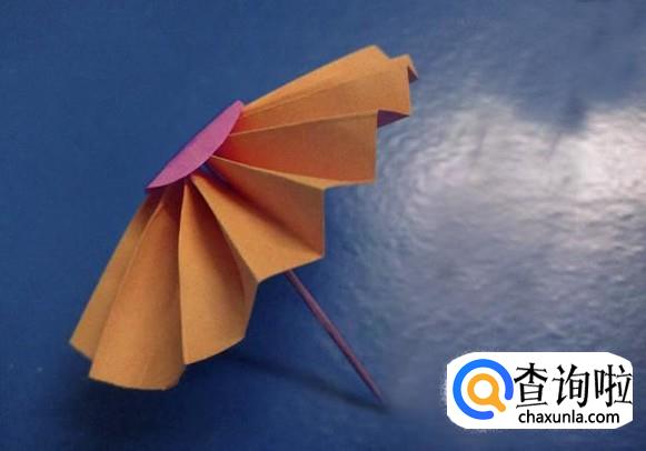 最后用牙签插入粉色圆形上,小雨伞就折好了。