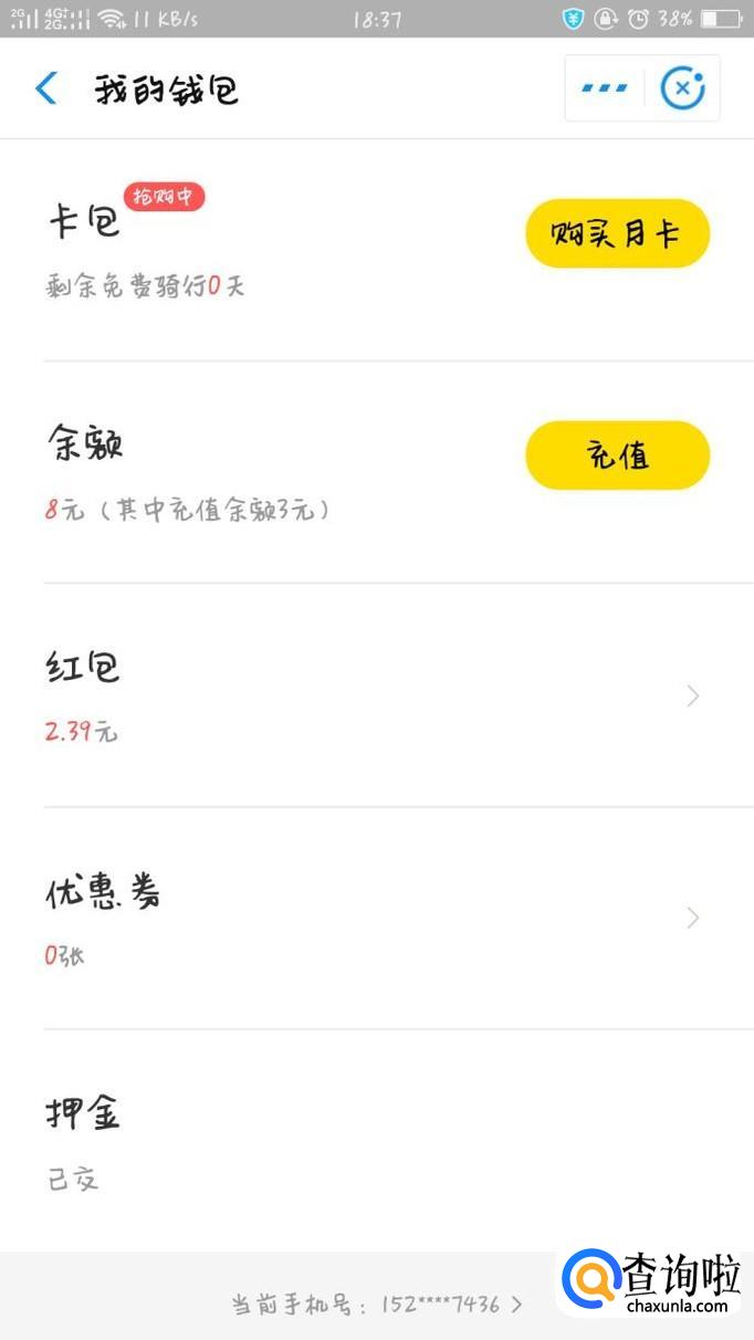 进入支付宝的“小黄车”页面之后,点击右下角的钱包。
