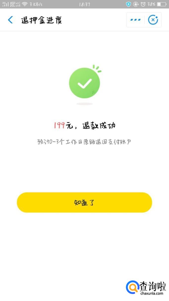 躲过那两个坑之后,就可以选择退押金的理由,再点提交,也是要注意按键颜色,就可以成功退押金了。