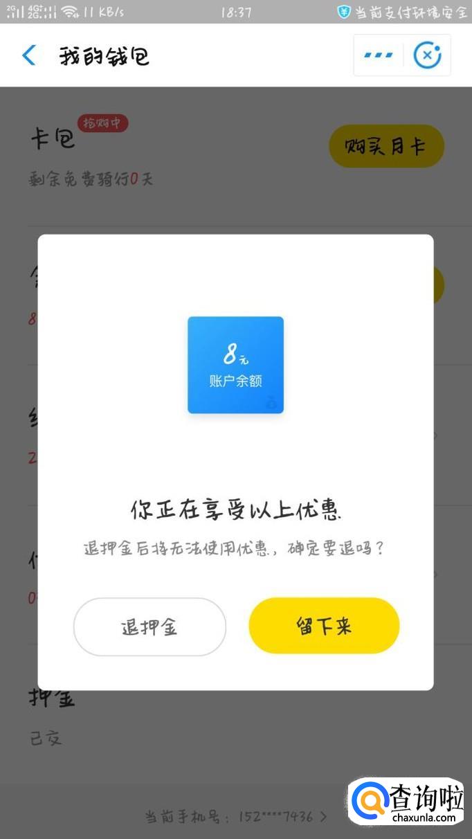 此时它会弹出以下两个页面,注意选项,它会通过按键的颜色迷惑你,阻止你退押金。