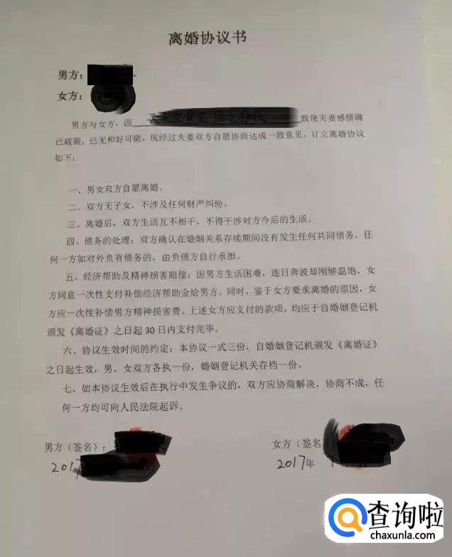 离婚需要证件:双方签字的离婚协议书。