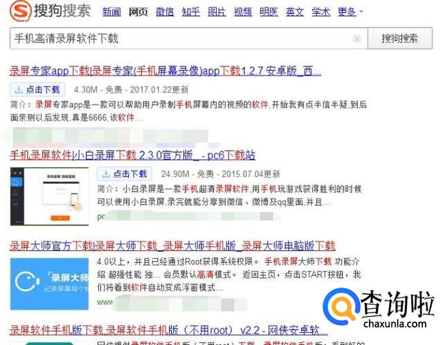现在市面上录屏软件非常多。如果需要录制高清屏幕的话,得需要下载高清屏幕录像软件才可以。点开搜狗搜索,在搜索栏输入:手机高清录频软件。点击进官网下载安装app。