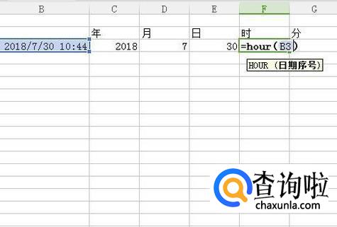 接着在F3单元格输入"=HOUR(B3)"并点击回车键,提取时间中的小时,如下图所示。
