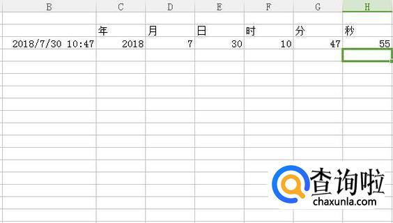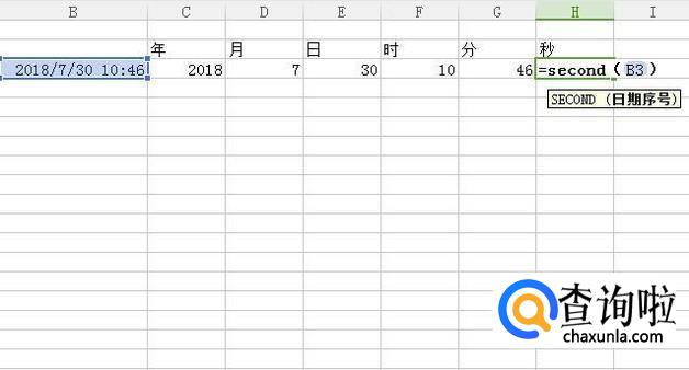 最后在H3单元格输入“=SECOND(B3)”并点击回车键,提取当前时间的秒,如下图所示。