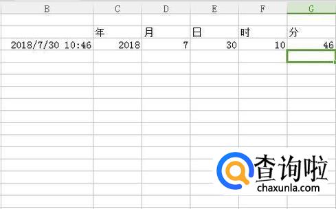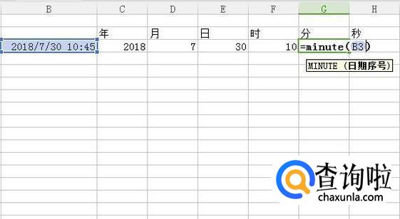 然后在G3单元格输入“=MINUTE(B3)”并点击回车键,提取当前时间的分钟,如下图所示。