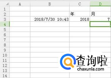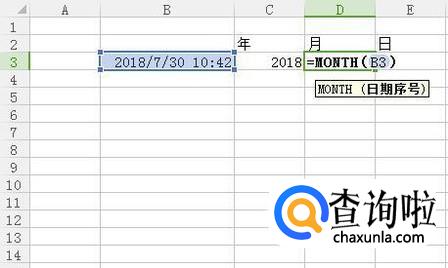 接着在D3单元格输入“=MONTH(B3)”并点击回车键,提取当前的月份,如下图所示。