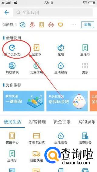 然后找到【饿了么外卖】并点击它,如下图所示: