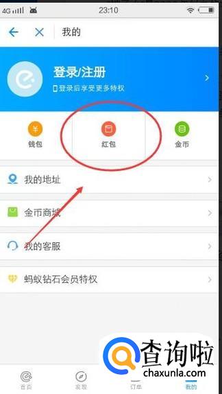 在个人中心可以找到【红包】,点击它就可以领取红包,如下图所示: