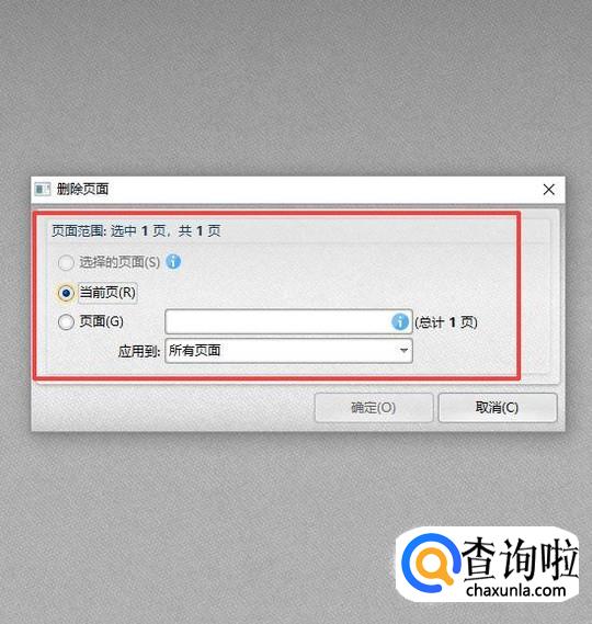 点击删除页面选项后,在页面中会有这样的窗口,选择要删除的页面,选择好后,点击确定就可以将其删除了哦。