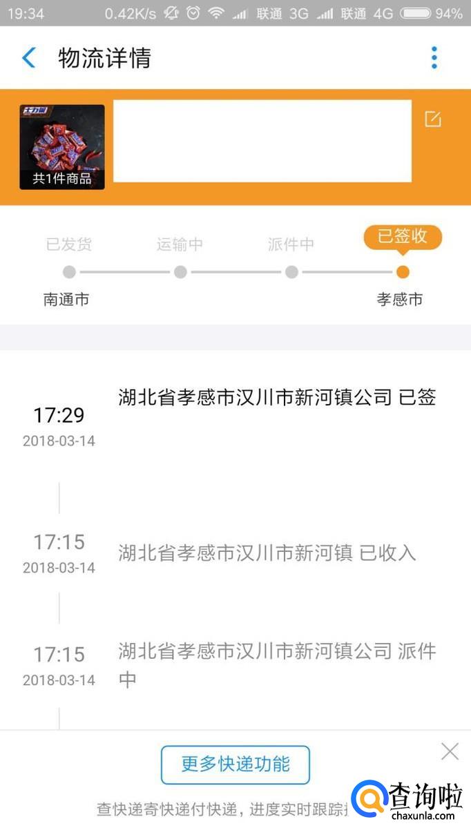 接下来打开的页面中,将展现商品订单的物流信息。